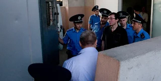 Вблизи суда стоят автобусы сотрудников правоохранительных органов.