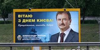 Накануне Дня Киева в столице появились билборды с поздравлением от имени главы КГГА Александра Попова. По мнению политологов, появление чиновника на рекламных щитах свидетельствует о старте предвыборной кампании