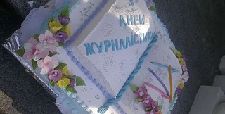 Тогда она открыла багажник автомобиля, где лежал многокилограммовый торт с надписью "С днем журналистики".