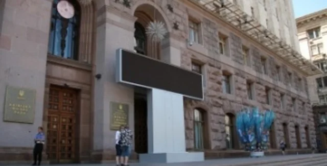 В Киеве возле здания городской государственной администрации завершили монтаж часов Евро-2012