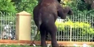 В индийском городе Майсур два диких слона устроили большой переполох. Пытаясь усмирить разбушевавшихся зверей, погиб один полицейский