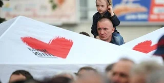 Со стороны дороги стоит кордон милиции и следит за тем, чтобы митингующие не вышли на проезжую часть.