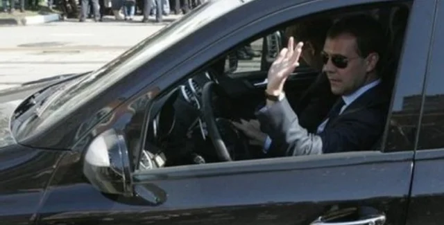 В Интернет попало видео, на котором джип сбивает толпу людей. Как оказалось, владельцем авто является российский президент Дмитрий Медведев