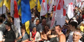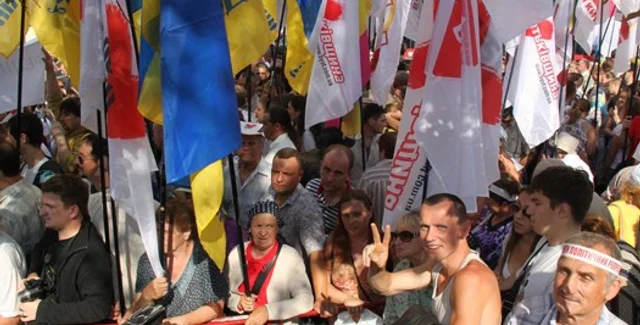Также сторонники экс-премьера держат как национальные флаги, так и флаги партии "Батьківщина".