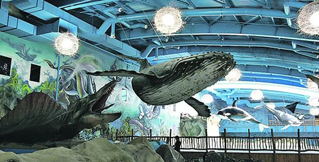 Аквапарк создан в стиле затерянного мира, где среди доисторических животных и диких растений расположен остров с голубыми лагунами, аквариумами с экзотическими жителями. Между водными горками расположились динозавры, мамонты, доисторические птицы. А в террариумах живут настоящие крокодилы, игуаны и питоны.