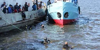 Сегодня, 25 июля, вечером началась заводка теплохода Булгария с мелководья в док