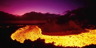 Как передают Вести, по склонам вулкана стекают потоки раскаленной лавы. По словам ученых, внутри кратера образовалось целое огненное озеро.