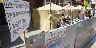 Об этом сообщает Интерфакс-Украина. По состоянию на 6.00 7 июля, на Крещатике находится около 20 народных депутатов, палаточный городок, состоящий из 20 палаток, окружен железными щитами, установленными милицией.