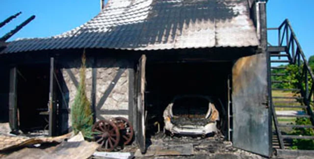Сгорел также автомобиль "Нисан" дочки владельцев "Черного замка" Екатерины Сметанюк, находившийся в боксе здания.