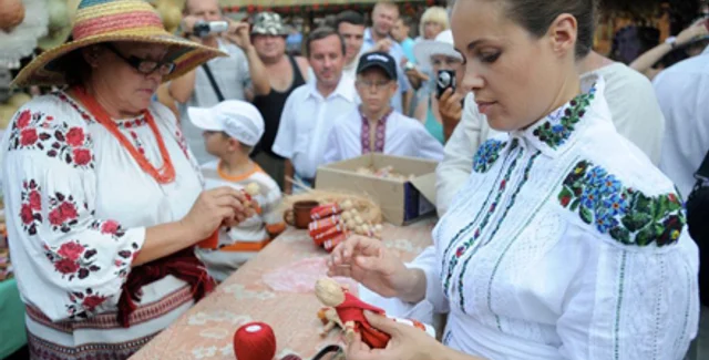 Народный депутат от фракции "БЮТ-Батькивщина" Наталия Королевская приняла участие в мастер-классах мастеров традиционных ремесел на Национальной Сорочинской ярмарке и своими руками сделала оберег для лидера БЮТ Юлии Тимошенко
