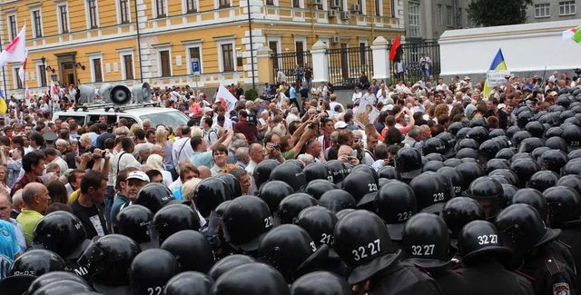 В главке также заявили, что пытавшиеся прорваться начали бросать в сотрудников спецподразделения "Беркут" палки, бутылки, зонтики.
