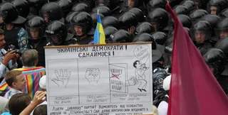 Напомним, 24 августа, несмотря на запрещение суда проводить акции оппозиции в любых местах, кроме парка имени Тараса Шевченко, участники многотысячного митинга, организованного Комитетом сопротивления диктатуре по случаю Дня независимости Украины, были намерены отправиться в Администрацию Президента, чтобы передать главе государства Виктору Януковичу резолюцию, которую они приняли. Однако бойцы спецподразделения милиции "Беркут" перегородили улицу Владимирскую, чтобы не допустить прохода колонны в Администрацию Президента. Также улица была перекрыта автозаками и автобусами с "беркутовцами".