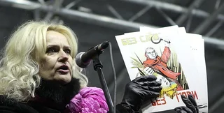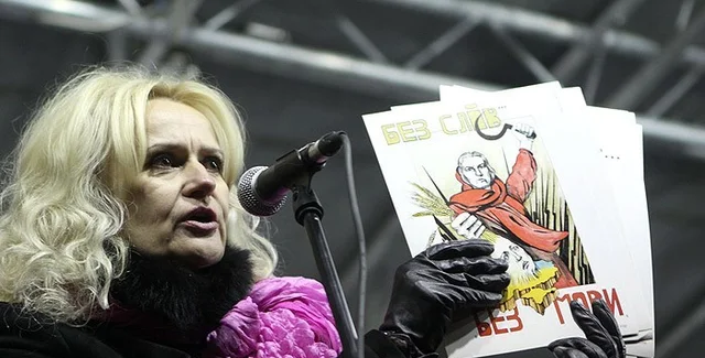 Как сообщает пресс-служба партии, когда Фарион поднималась на сцену для выступления, трое молодых мужчин крепкого телосложения пытались помешать ей и начали стягивать со сцены.
