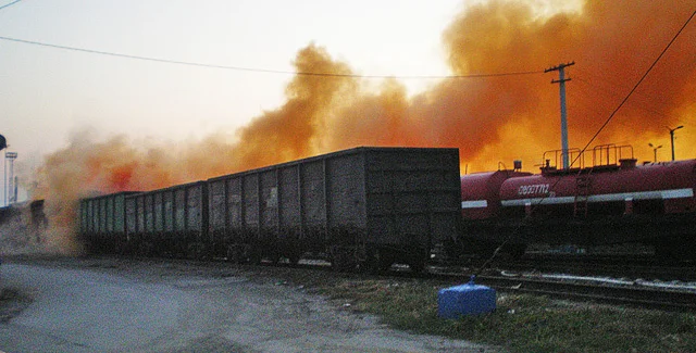 На железнодорожном вокзале Челябинска произошло ЧП: в вагоне одного из грузовых составов разбилось десять 5-литровых стеклянных емкостей с бромом, в результате чего красно-бурое едкое облако окутало областной центр и близлежащий Копейск