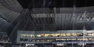 Отметим, что перед открытием стадион был готов не полностью – в двух местах пока не достроена крыша, перед стадионом – стройка с тремя башенными кранами, на которой находится много мусора и песка.