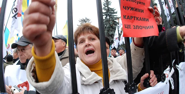 Несколько сотен человек со знаменами БЮТ и "Фронта змин" собрались сегодня у здания Верховной Рады