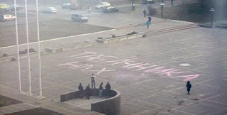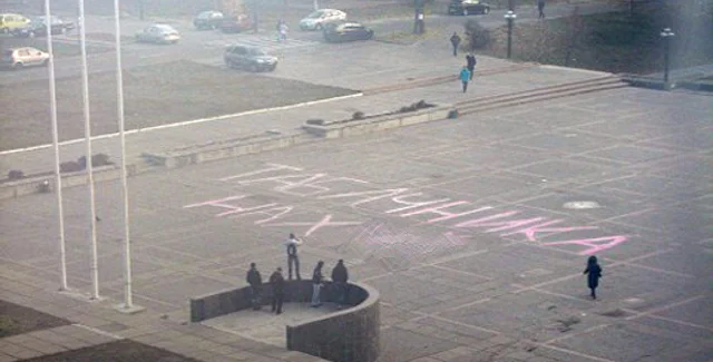 Сегодня, 18 ноября, на Площади знаний (между ДК КПИ, библиотекой и 7-м корпусом) перед началом первой пары появилась надпись "Табачника на х.."!, сообщает NewsMarket. Видеозапись процесса нанесения надписи была выложена на сайте видеосервиса YouTube.