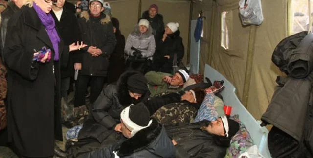 Ликвидаторы последствий аварии на Чернобыльской АЭС, проводящие голодовку возле здания главного управления пенсионного фонда Донецкой области, заявили о готовности проведения самосожжения в случае, если власть силовыми методами попытается снести палаточный городок протестующих