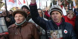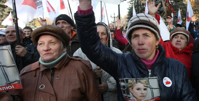 Большинство из них держат в руках цветы, чтобы поздравить таким образом Тимошенко.