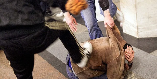 На станции "Лыбедская" на платформе поезда ожидало несколько десятков молодых людей такого же вида. Как только двери открылись, между ними началась драка. Нескольких участников драки из вагона вытащили на платформу. Один из них остался лежать на станции в бессознательном состоянии.