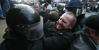 В парке напротив здания Кабинета министров Украины произошло столкновение между милицией и участниками акции, протестующими против против антисоциальной политики власти