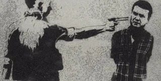 Стоит отметить, что трафарет был сделан на основе фото времен Вьетнамской войны.