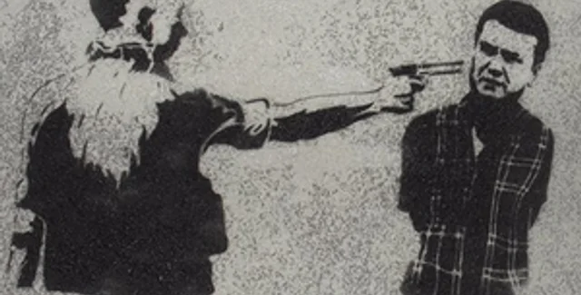 На рисунке неизвестный направляет в сторону похожего на Януковича мужчины дуло пистолета, сообщает Корреспондент.net со ссылкой на Репортер Одессы.