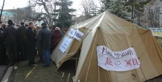 Во Львове около 50 чернобыльцев установили палатки у помещения Львовской ОГА в поддержку акций в Киеве и Донецке
