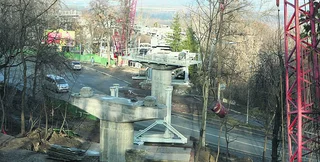 По информации газеты, уже отстроено административное здание, на крыше которого будут приземляться вертолеты, и готова часть моста, который выйдет к Мариинскому парку. Сейчас строители готовят тротуар возле дома №9-а к укладке нового асфальта. Автомобили с площадки будут выезжать практически у этого дома, а дальше - на улицу Грушевского.