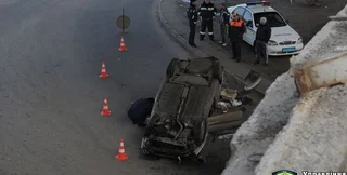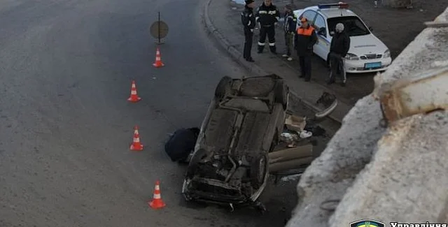 Как сообщает пресс-служба ГАИ, на Южном путепроводе водитель автомобиля Daewoo Lanos совершил наезд на отбойную металлическую ленту, после чего сорвался вниз с 6-метровой высоты.