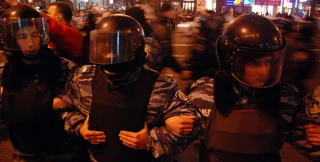 Сотрудники киевской милиции задержали несколько десятков молодых людей, которые пытались затеять драку с участниками шествия ВО "Свобода", по случаю Дня Героев Крут, возле станции метро "Арсенальная"