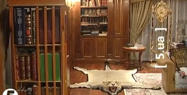 Проводя экскурсию кабинетом и библиотекой, Литвин демонстрирует Евангелие XVII века, икону святого Владимира во весь рост, статуэтку "Тайная вечеря" и стеллажи старинных книг. Литвин также проговорился, что в его имении есть винный подвал, но съемочную группу туда приглашать не стал.
