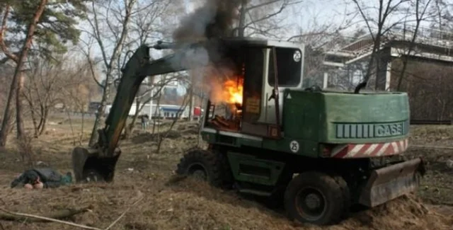 Сегодня, 21 марта, акция граждан, протестующих против несанкционированной вырубки леса в Киеве возле улицы Ушакова, закончилась поджогом техники