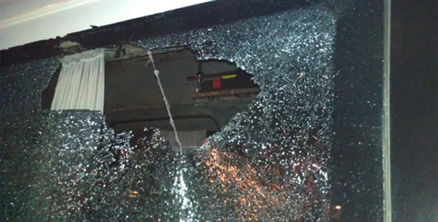 Следующим в колонне следовал автобус Volkswagen. Он пострадал еще серьезнее. Как ни пытался водитель "увернуть" в сторону, один булыжник внушительного размера попал в окно и разбил его вдребезги. "Мы только отъехали от стадиона, и тут на дорогу выскочили несколько болельщиков. Они стали забрасывать автобусы камнями, – едва сдерживая слезы, рассказала о случившемся координатор старобешевского школьного фан-клуба Наталья Скорик. – Слава Богу, что по нашей команде все пассажиры наклонились. Если бы этого не сделали, камень бы просто убил ребенка. Мальчик испытал шок, потерял сознание. Весь в стеклах. Еще у одной девочки порезано лицо, а у мужчины – рука".