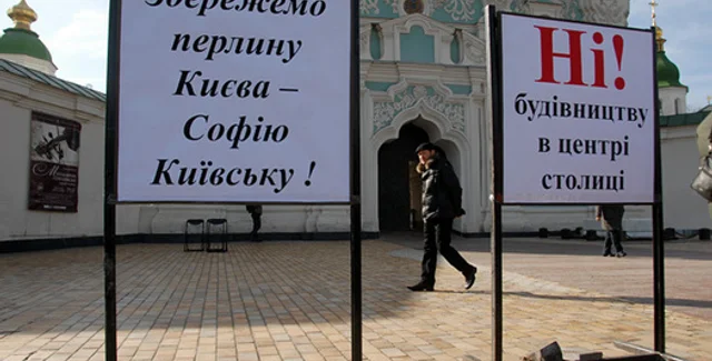 Застройщик территории возле Софии Киевской извещен об уголовной ответственности в случае продолжения работ