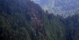Индонезийское телевидение показало фотоснимки с места крушения самолета. По предварительным данным, SSJ-100 врезался в вертикальный склон горы, часть фрагментов осталась на склоне, часть упала вниз.