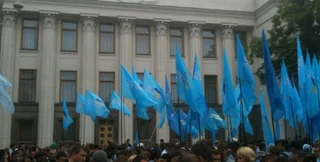 Противники принятия законопроекта о языках также продвигаются в сторону парламента, однако сотрудники милиции не пропускают их за выставленное ограждение. Как сообщается, люди занимают места на тротуарах на всех подходах к парламенту.