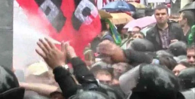 Неизвестное вещество во время киевских акций, посвященных законопроекту о языковой политике, было распылено в сторону сотрудников милиции, сообщается на сайте МВД Украины.