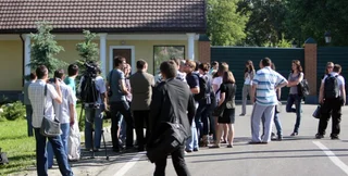 Тем не менее, сегодня утром около полусотни журналистов презентовали под воротами резиденции Межгорья карту громких коррупционных расследований под названием Киев. Карта коррупции. Журналисты сообщили, что приехали "на место проконтролировать выполнение решения суда".