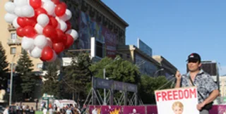 В харьковской фан-зоне Евро-2012 запустили в воздух белые и красные шары с плакатом Юле-волю!
