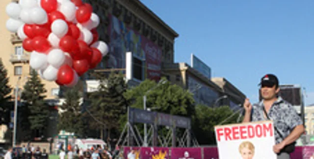 Во время трансляции церемонии открытия Евро-2012 в небе над официальной фан-зоной в Харькове проплыла связка белых и красных шаров, к которой был прикреплен плакат Юле-волю!.