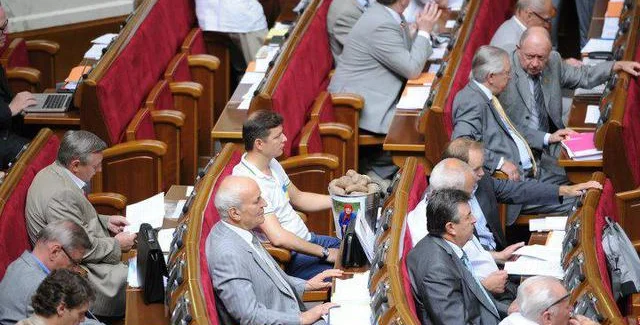 Как сообщает УНИАН, Олег Ляшко записался на выступление из трибуны. После того, как ему предоставили это право, он вышел к трибуне с ведром и начал говорить о тяжелом труде крестьян. Первый вице-спикер Адам Мартынюк пытался прервать Олега Ляшко, однако тот не останавливался.