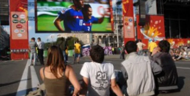 Возле столичной фан-зоны на Крещатике стюарты и сотрудники правоохранительных органов сняли с дерева болельщика, решившего понаблюдать "со стороны" за футбольным матчем Италия - Англия.