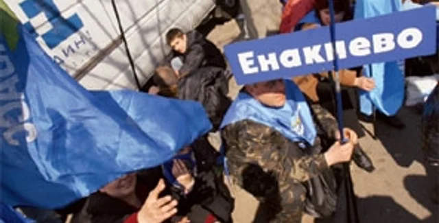 6.00. Киевский вокзал. День начинается с того, что в вагоне уже нет воды, и привести себя в порядок никак невозможно. Киевское утро кажется зябким и неуютным. И как любопытно, оказывается, смотрится поезд, который никто не встречает! А ведь нас действительно не встречает никто. "Никому мы, донецкие, в Киеве не нужны, кроме разве что Партии регионов", — вот что, наверное, думает каждый пассажир такого спецпоезда, высаживаясь хмурым утром на киевской платформе. Неудивительно это — я тоже чуть было не начинаю так думать, забыв на минуту, что у меня-то в этом городе есть свой угол и горячая ванна. На платформе меж тем идет подготовка к митингу: молчаливые заспанные гости столицы — мои попутчики — получают под расписку флаги и удочки, которые служат им древком. Под расписку — потому что, выясняю, бывали случаи, когда вверенную удочку митингующие за червонец или двадцатку загоняли "рыбакам" со столичной пропиской.
