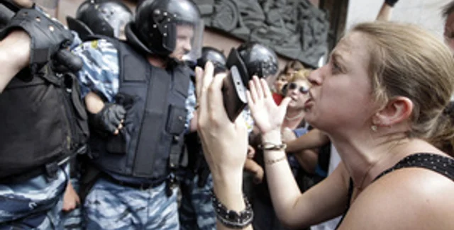 Участников обеих акций отделял усиленный милицейский кордон.