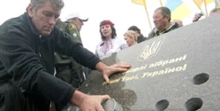 Президент Украины Виктор Ющенко на Говерле открыл трехметровую скульптурную композицию «Тризуб» и мраморную стелу, в которую заложены капсулы с землей из всех регионов Украины.