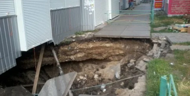 Как сообщается, полностью обвалилась дорожка между двумя ларьками, пишет Сегодня. Глубина провала около двух метров. Обвалился также асфальт в зеленой зоне и образовалась яма перед ступеньками в метро. Вход в метро возле обвала перегородили.