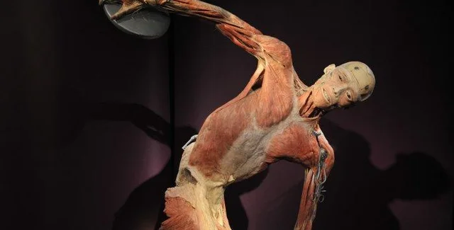 Ее экспонатами являются настоящие человеческие тела (завещанные науке добровольцами) с обнаженными мышцами и другими органами.