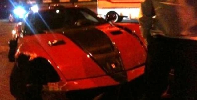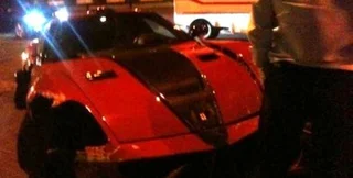 В ночь с 31 августа на 1 сентября близ станции метро Нивки в Киеве красный Ferrari на большой скорости врезался в электроопору.