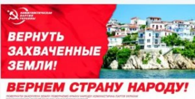Коммунистическая партия Украины в своем рекламном билборде с призывом вернуть захваченные земли воспользовалась изображением с того же стокового хранилища фотографий, что и Партия регионов ранее
